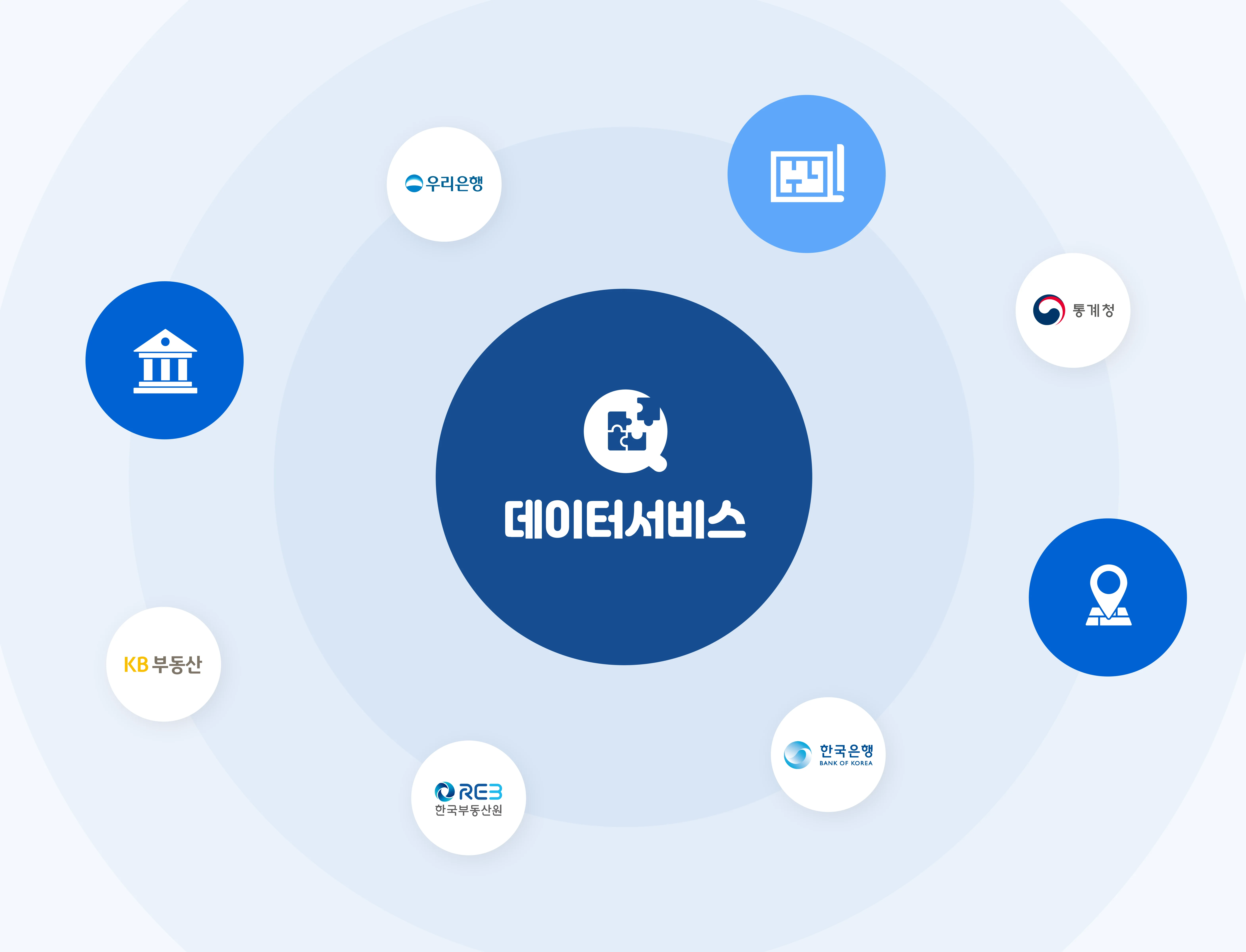 통계청, 한국은행, 행정안전부, 한국부동산원, 우리은행, KB부동산 등 유수기관의 공식 통계 뿐만 아니라 건축물/토지대장 기반 심화통계를 자체 생성하여 제공합니다.