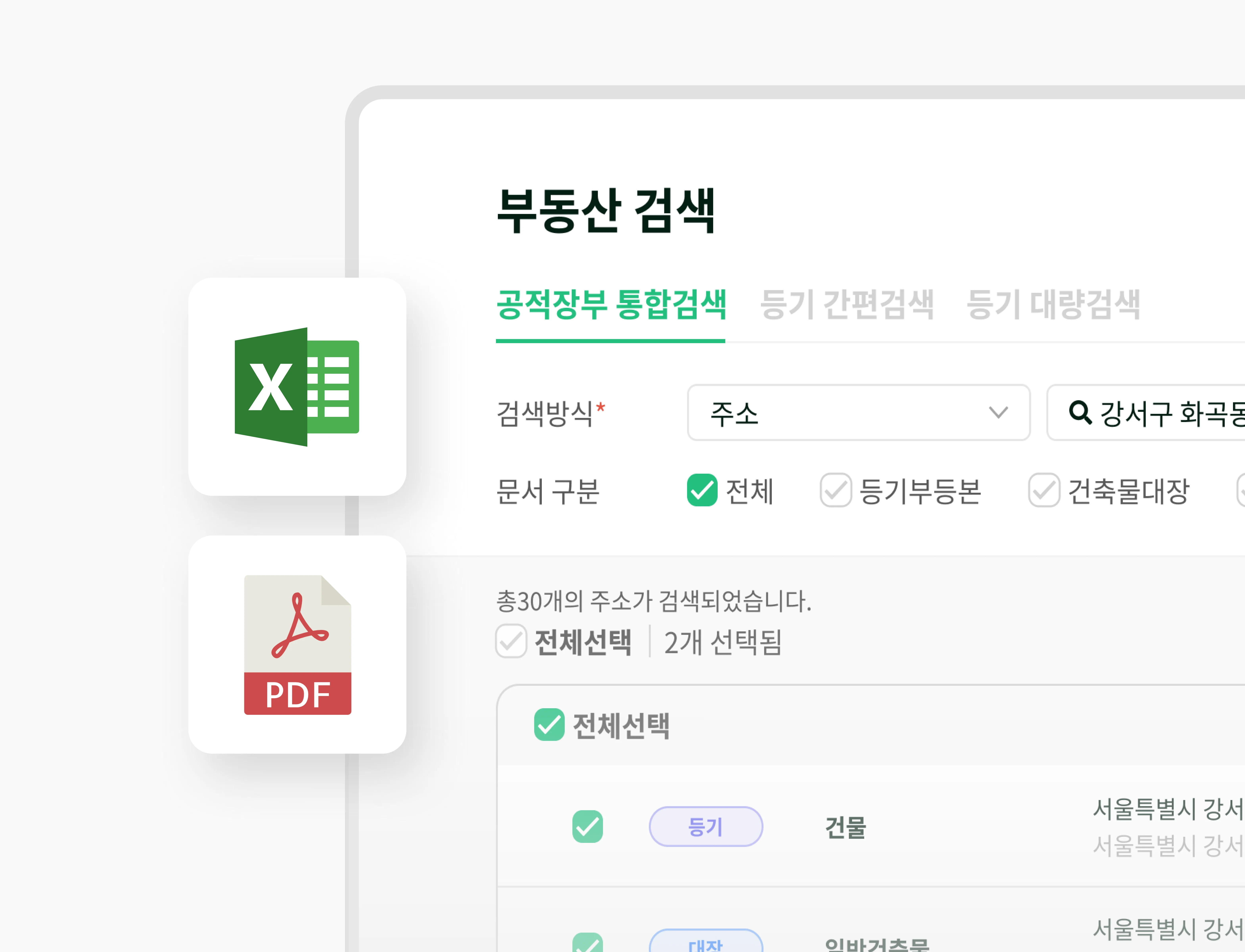 주소와 모든 부동산 서류를 연계하여 주소 입력 한번으로 다양한 부동산 서류를 한번에 열람할 수 있어요.