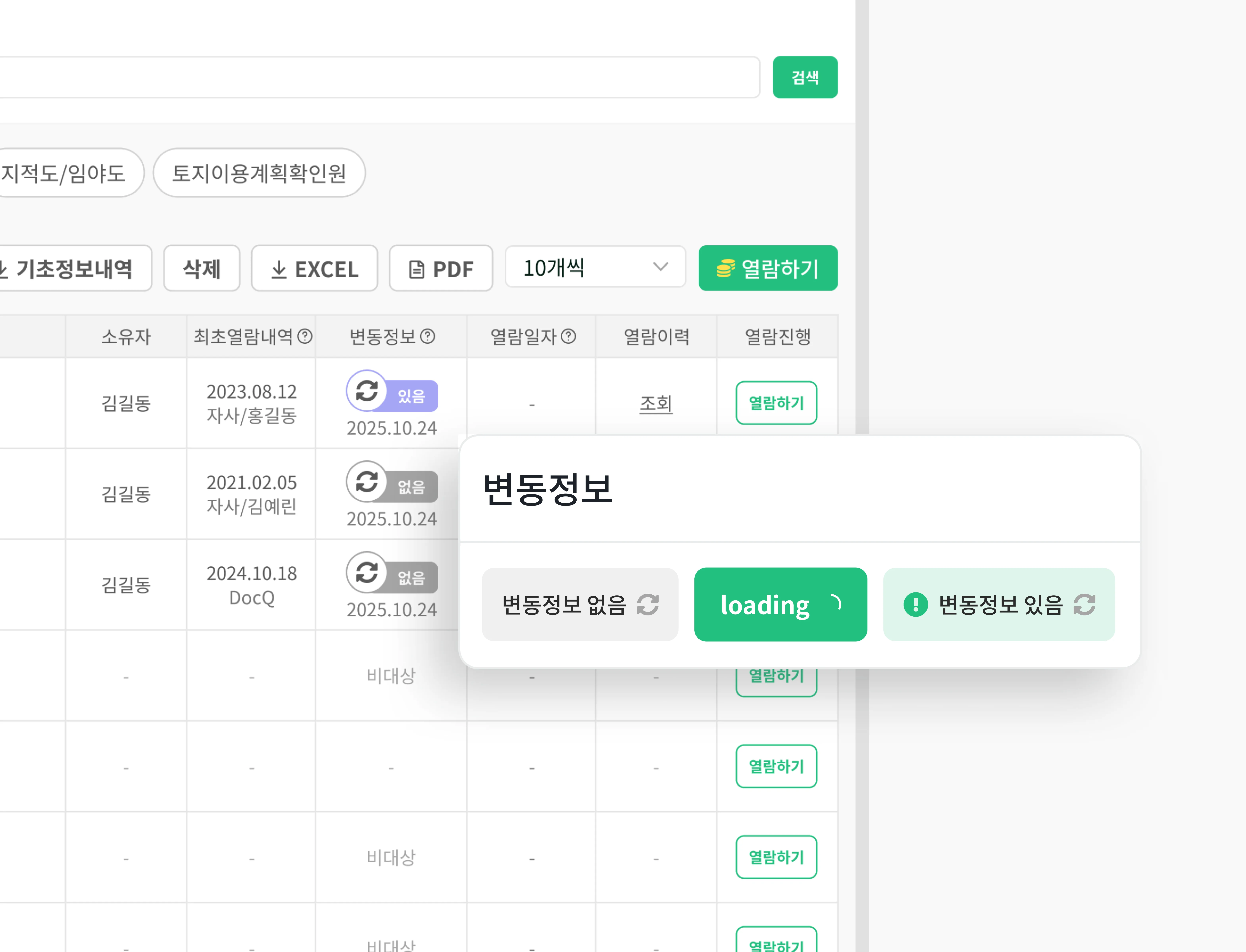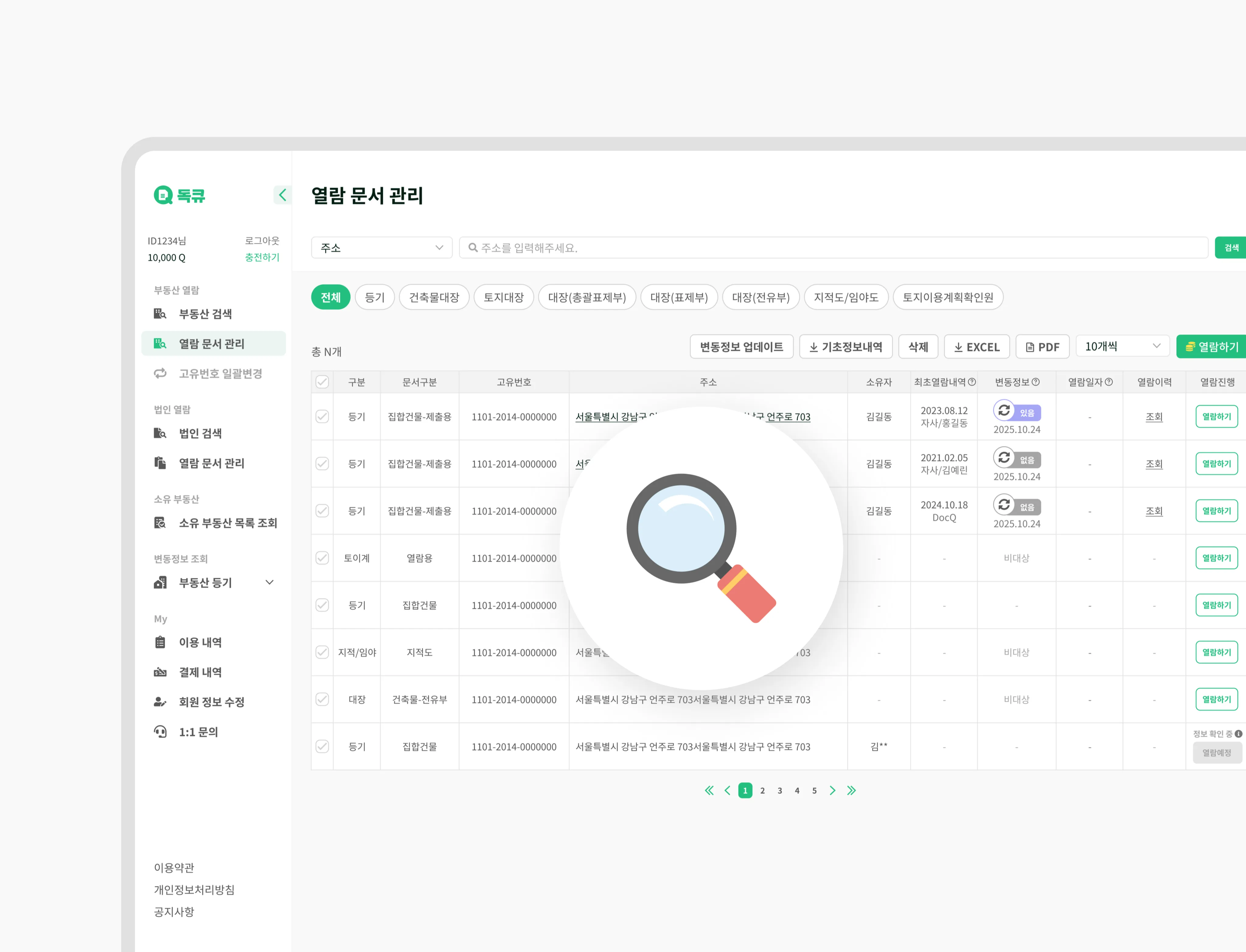 독큐가 열람·보유한 등기의 변동을 실시간으로 확인하여, 변동이 없으면 더 저렴하게 이용할 수 있어요.